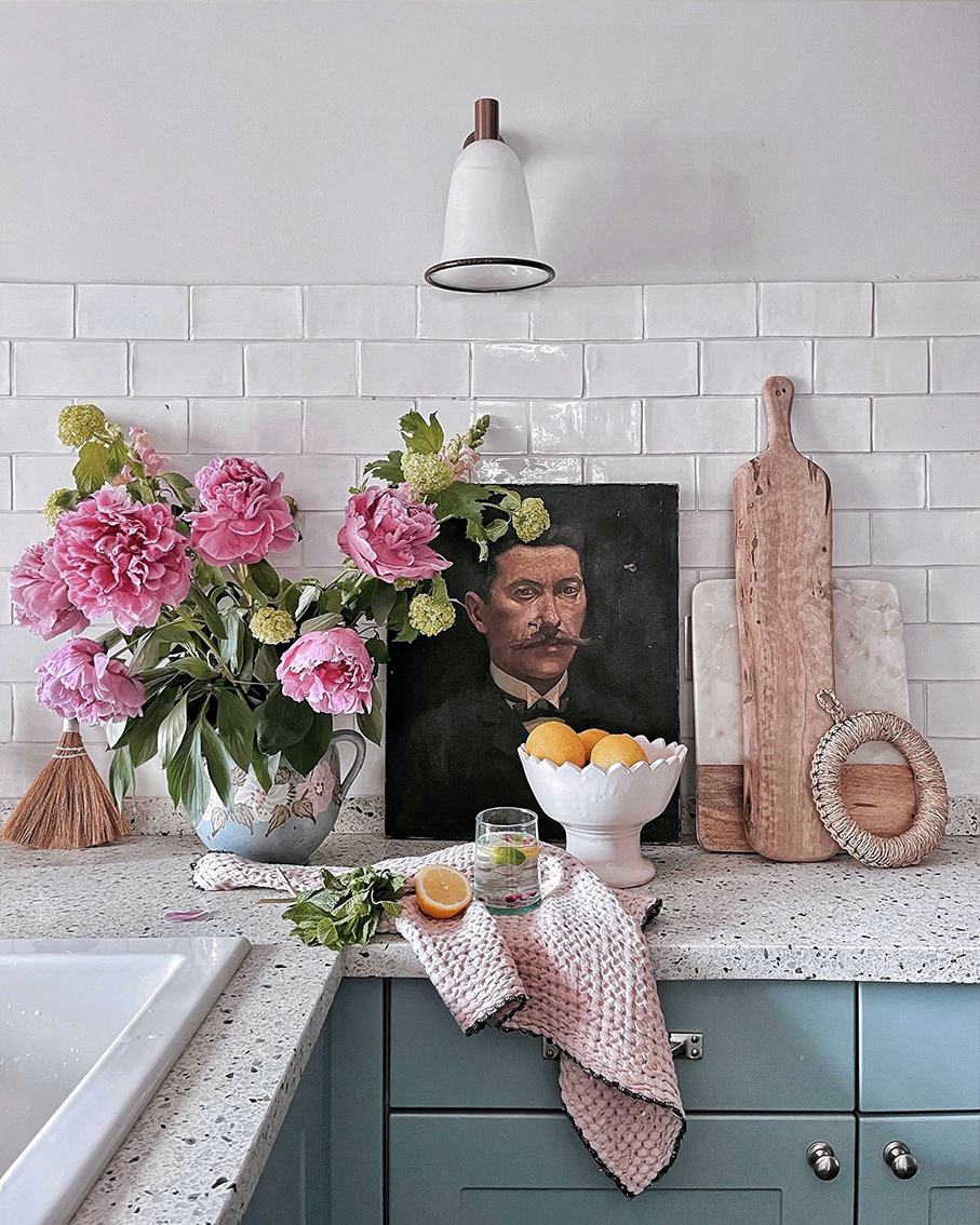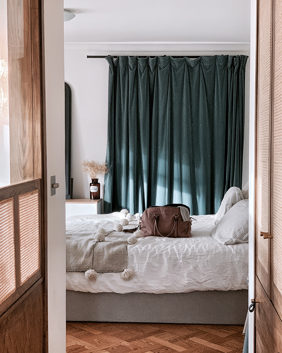 Cela n’a pas était compliqué de nous approprier l’espace avec notre décoration. J’aurais pu choisir les mêmes peintures aux murs, la même cuisine anglaise rétro, les rideaux velours bleus paons… L’appartement venait d’être refait aux goûts du jour par un architecte d’intérieur français.