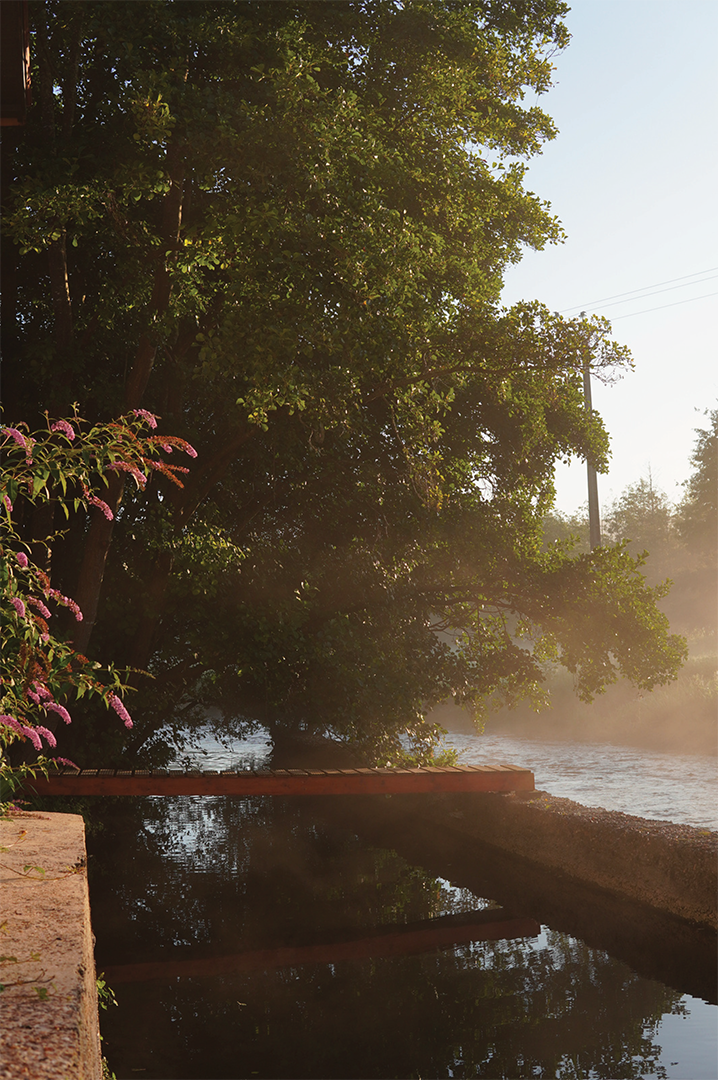 Contre toute attente, cela nous permet de nous installer définitivement dans l’usine. De mon côté, j’en profite pour quitter mon ancienne vie professionnelle. Je me lance à plein temps dans le soin des autres, via la méditation et une pratique d’accompagnement à l’image de l’hypnose. Et c’est là que l’usine en bordure de rivière devient un écrin parfait pour ce nouveau projet.