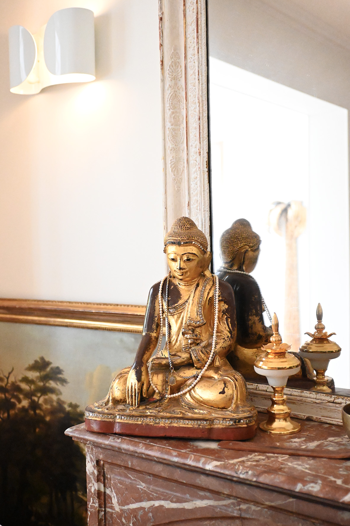 Et dans le style, je crois que le doré restera une de mes passions avec les objets anciens. Je crois que je n’arriverai jamais à aller dans du moderne, du contemporain, ce n’est pas moi. Peut-être une pièce contemporaine, mais j’ai tendance plutôt à les éviter…