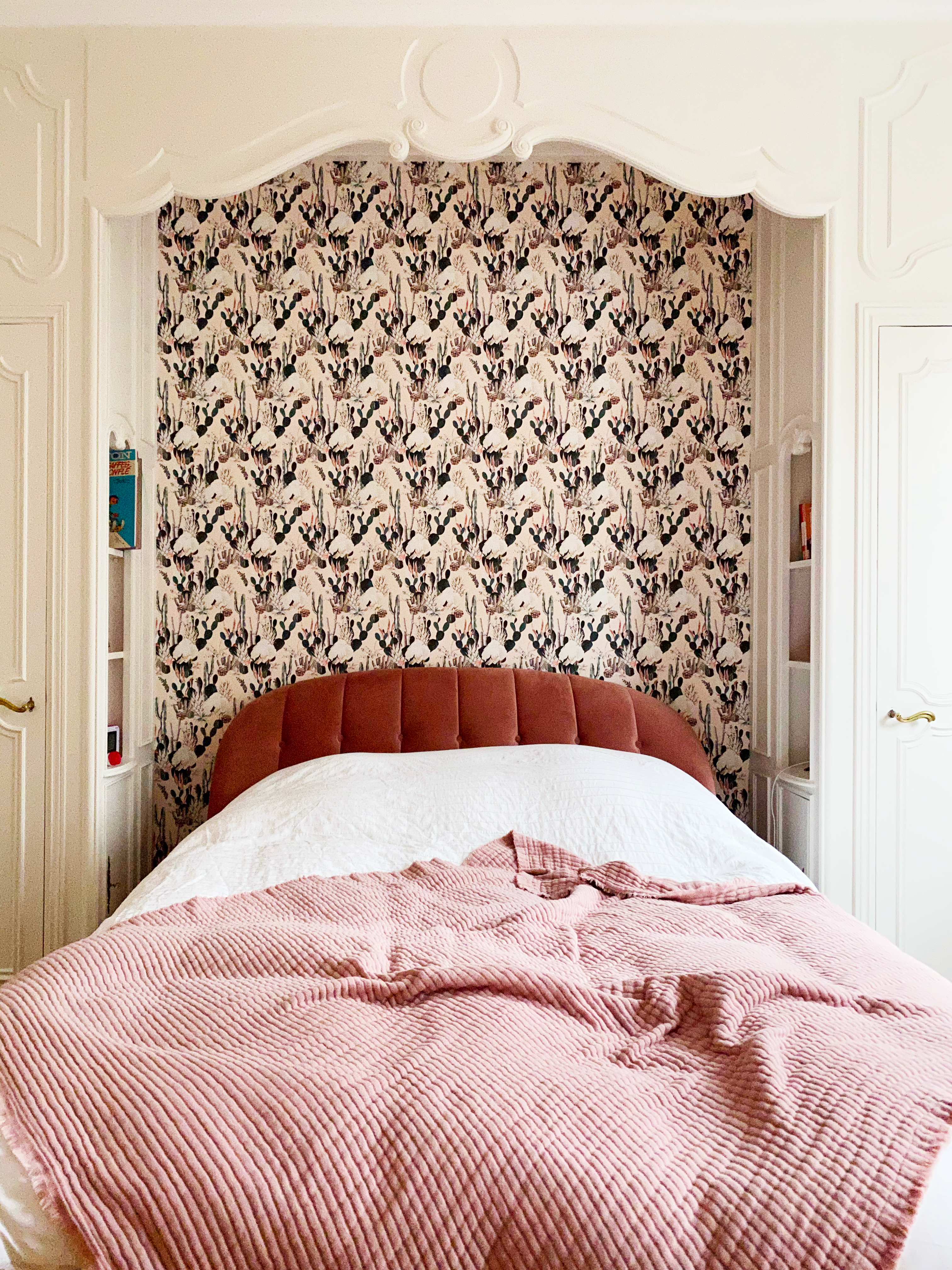 Par exemple, de temps en temps, je vais dans ma chambre pour lire, parce que c’est l’endroit calme et hyper lumineux de la maison, où je me sens bien. Mais aussi, parce qu’il y a moins de passage… On a une grande pièce de vie et les enfants sont souvent dans cette pièce, pour les devoirs, la télé, tout le monde passe dans cet endroit, alors ma chambre, c’est un peu mon lieu à moi… Pour moi, une maison chaleureuse, c’est vraiment ça, plusieurs endroits où on peut se poser, recevoir du monde et ne pas se sentir étouffé.