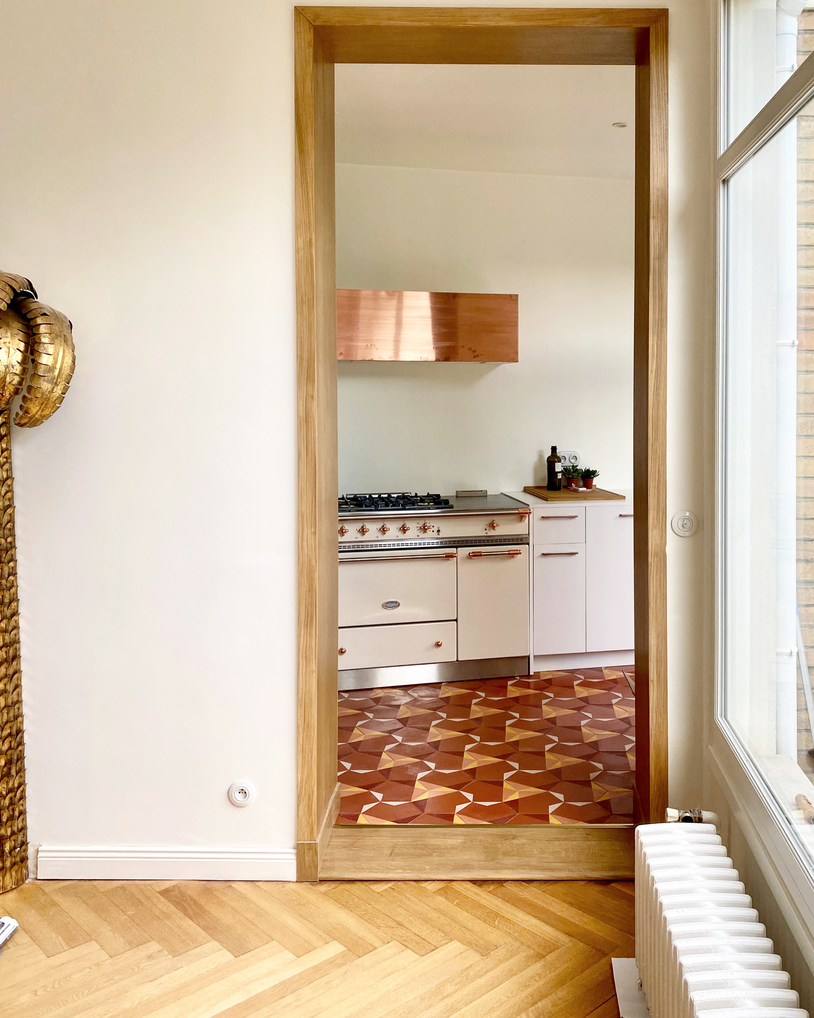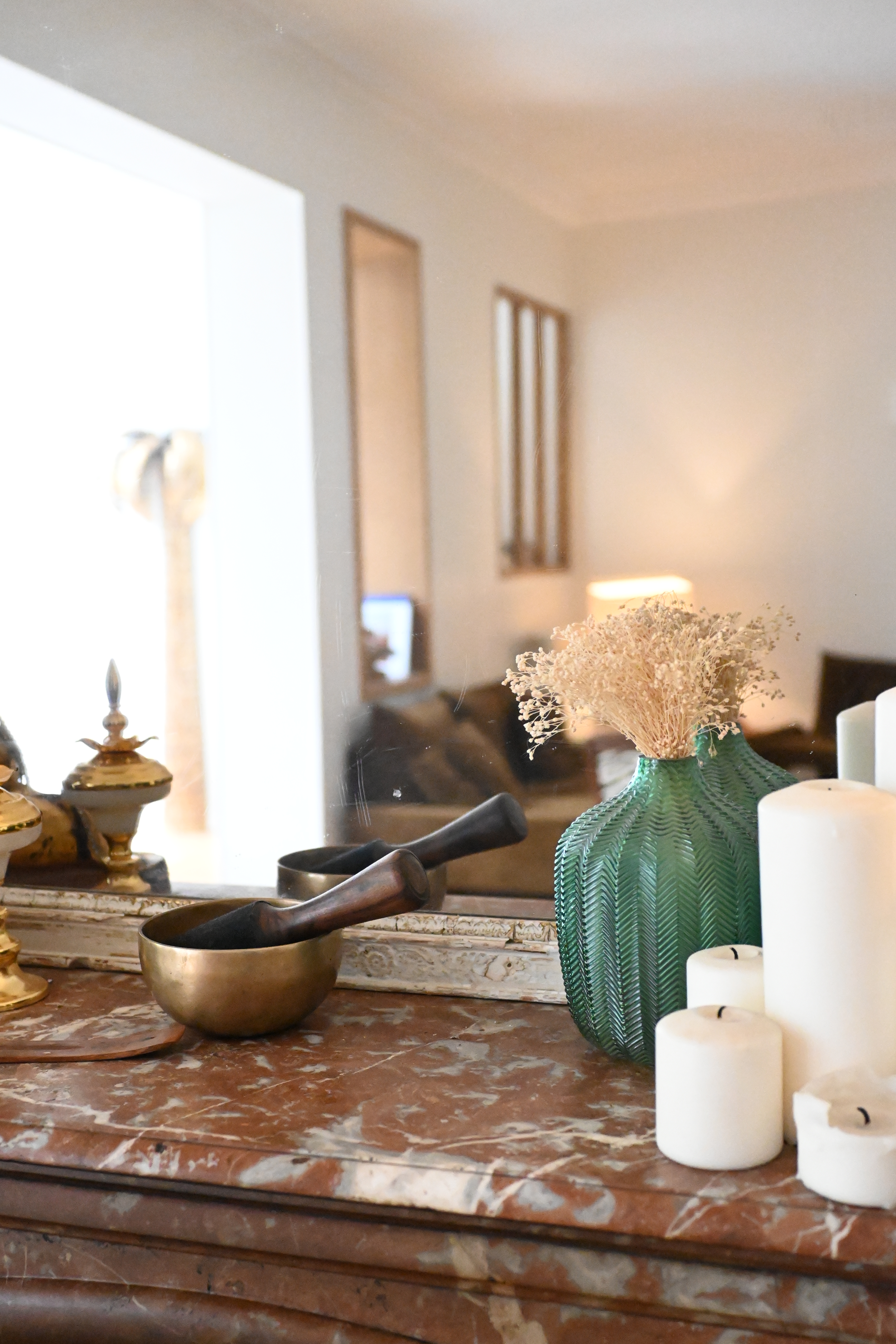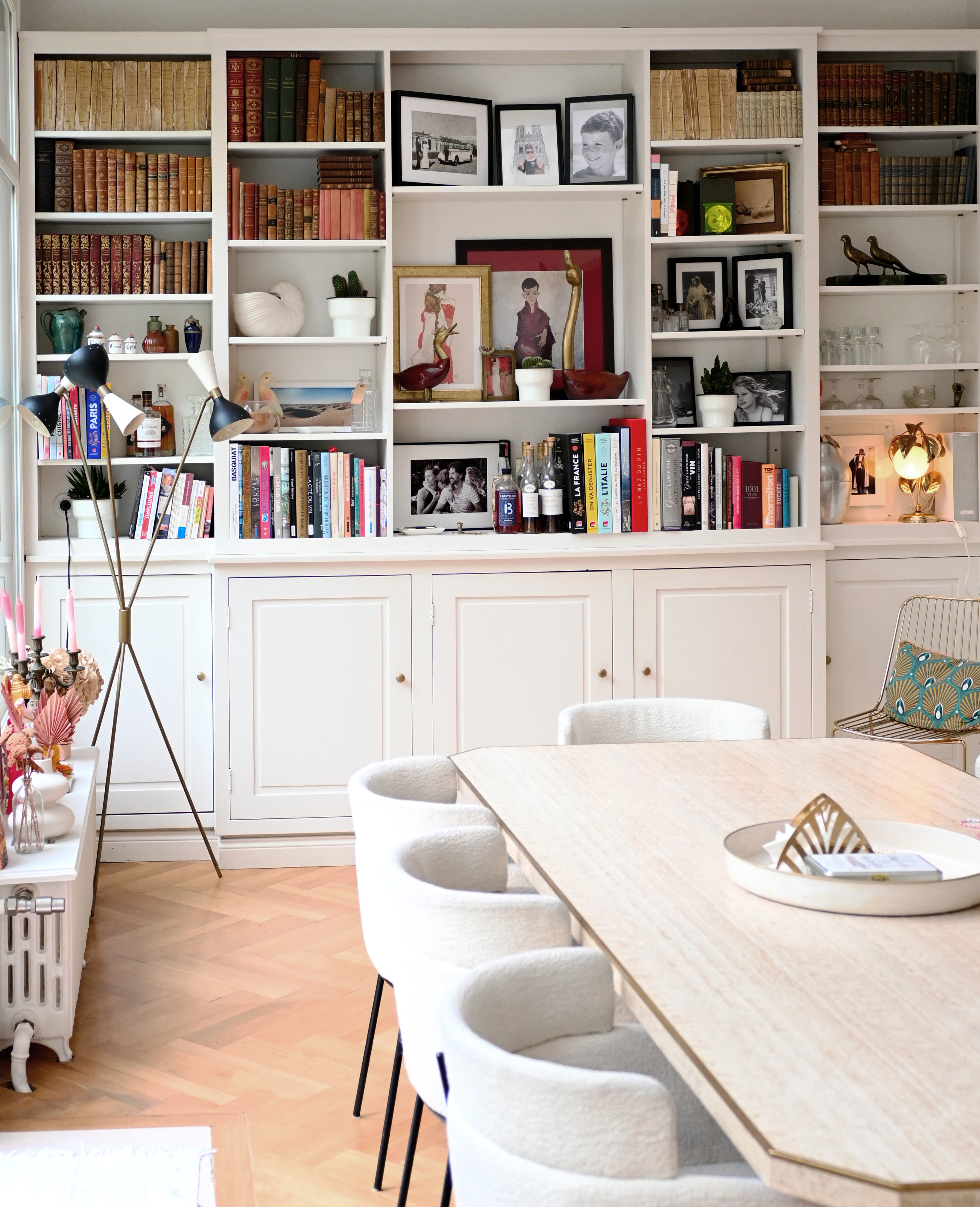 Je ne pense pas que mon style ait évolué, parce qu’on est parti aussi de quelque chose, je trouve, qui me ressemblait beaucoup dès le début. Ça, c’était trés important. Et puis, on l’a vraiment construite en se disant : « On la revendra, donc il ne faut pas non plus que ça soit tout qu’à notre goût »… Mais j’y ai rajouté des touches de fun au fur et à mesure de mes trouvailles, encore plus de doré, des objets un peu rigolos avec de la couleur.