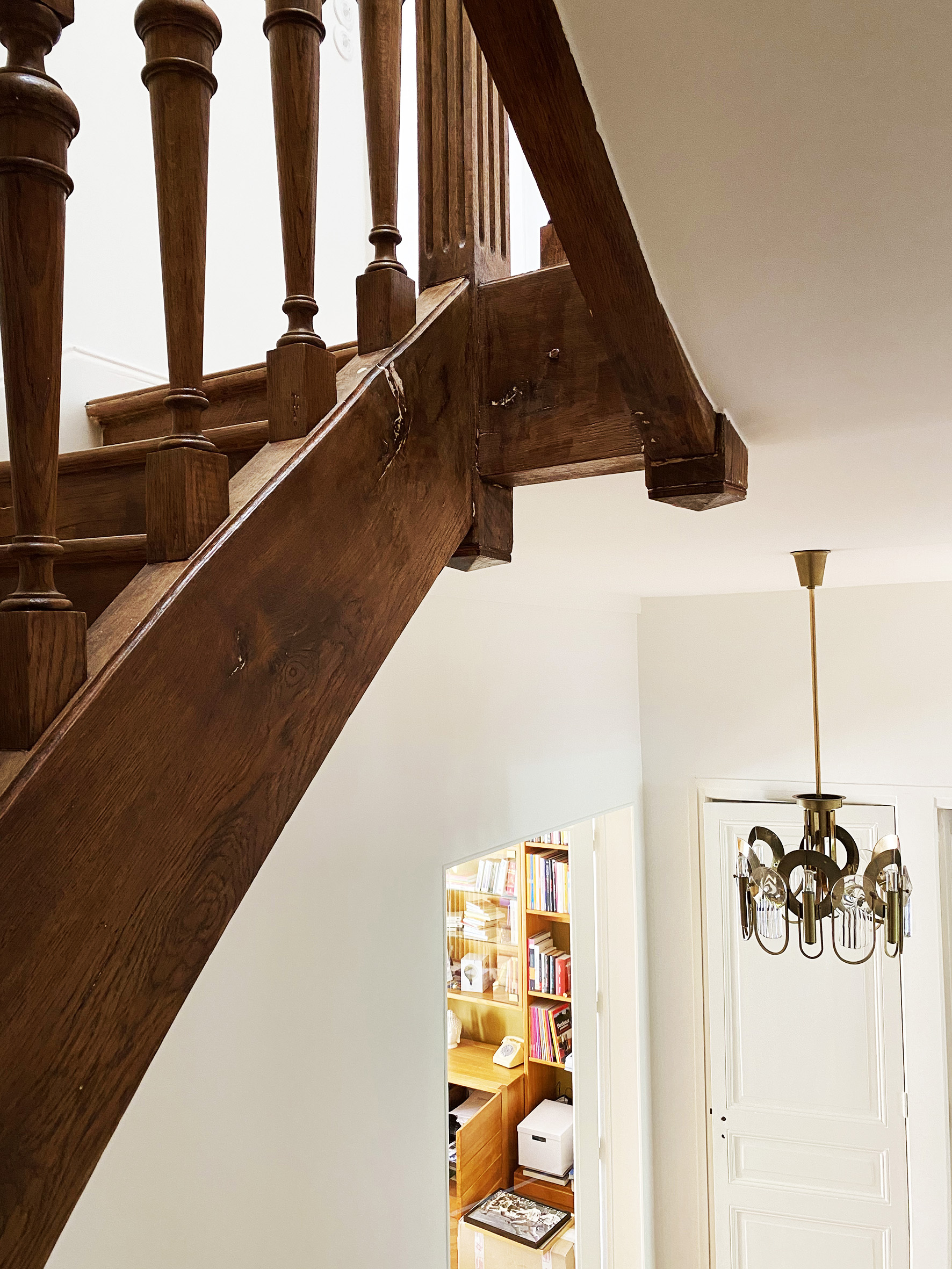 Exactement, au moment où on a acheté cette maison, j’ai récupéré beaucoup d’affaires de chez mes parents. Mon père aimait beaucoup les meubles, il en achetait beaucoup d’une époque qui n’est pas forcément très actuelle, et il avait hérité de beaucoup tableaux. Il se trouve qu’avec mon frère et ma sœur, on avait décidé que c’était moi qui devais les garder. J’avais donc très envie de les intégrer dans la maison. Aussi, les tableaux de famille, je leur ai fait une place particulière pour pas qu’ils ne soient trop imposés dans la maison, car ils donnent un style qui n’est pas du tout le mien.