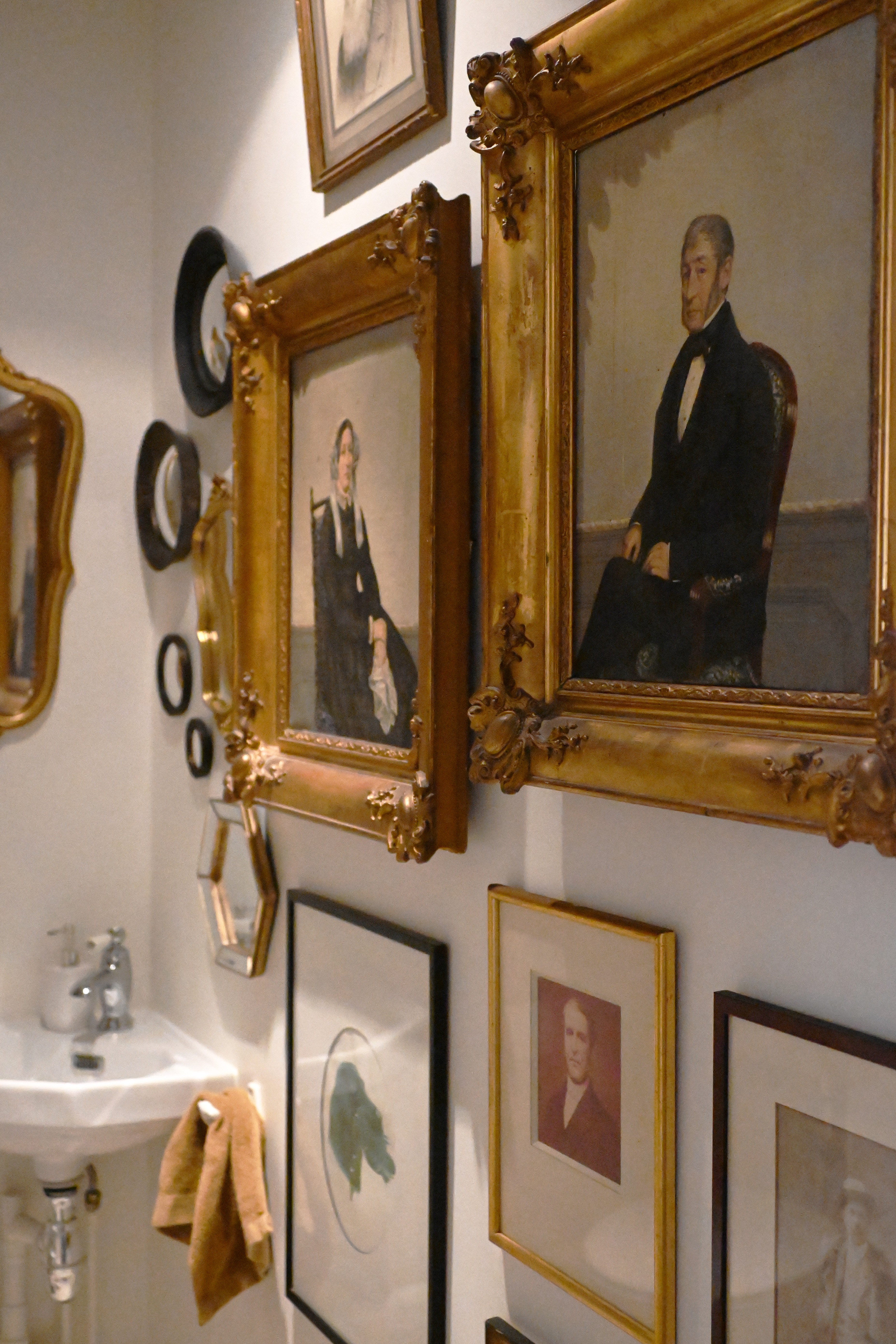 Ensemble, nous leur avons trouvé une place toute particulière, les tableaux de famille ont été accroché dans… les toilettes (rires) et je trouve ça drôle, ça décale complètement la fonction de cette pièce, mais aussi parce ces tableaux de familles ont pour moi une valeur affective dans la transmission, ce n’est pas totalement mon style, mais le fait de les avoir près de moi tous les jours était important.